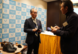 第二部の小澤廣幸氏は、「革製品のサステナビリティと工房ツアー体験」をテーマに、創業となる1995年から、ものだけでなくサービスも提供したレザーグッズのライフサイクルバリュー(革製品の生涯価値形成)を追求しハイクオリティなMADE IN JAPANの商品を提案し続け、「一生愛せる本質的価値のあるものづくり」の言葉に込められた思いを熱く語っていただきました。またレザーケアマイスター及びシューケアマイスター原田正輝氏によるメンテナンスの実演や、「CYPRIS」各種製品の展示および即売会を開催。ご参加者の皆さまにモルフォ革製品を実際手に取って質の高さを感じていただくなど賑わいを見せました。
